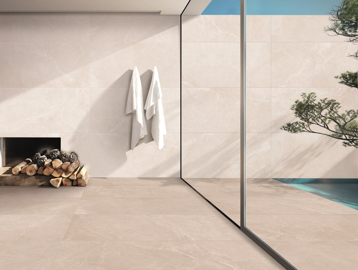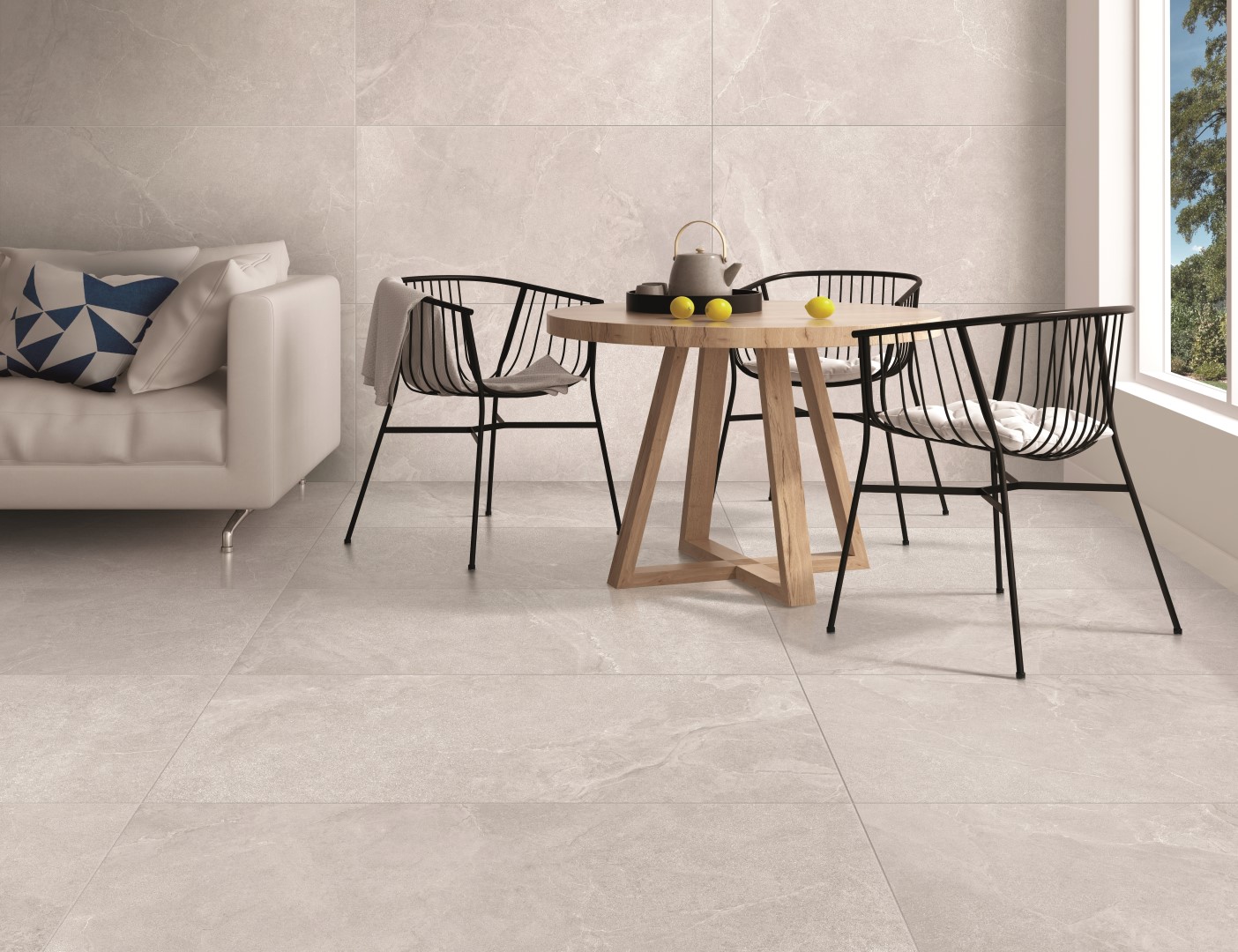 La palette dei colori richiama colorazioni tipiche della pietra come Avorio, Sabbia, Grigio e Perla; inoltre, tutte e quattro le tonalità sono disponibili nella versione per esterni in diversi formati e diversi spessori.