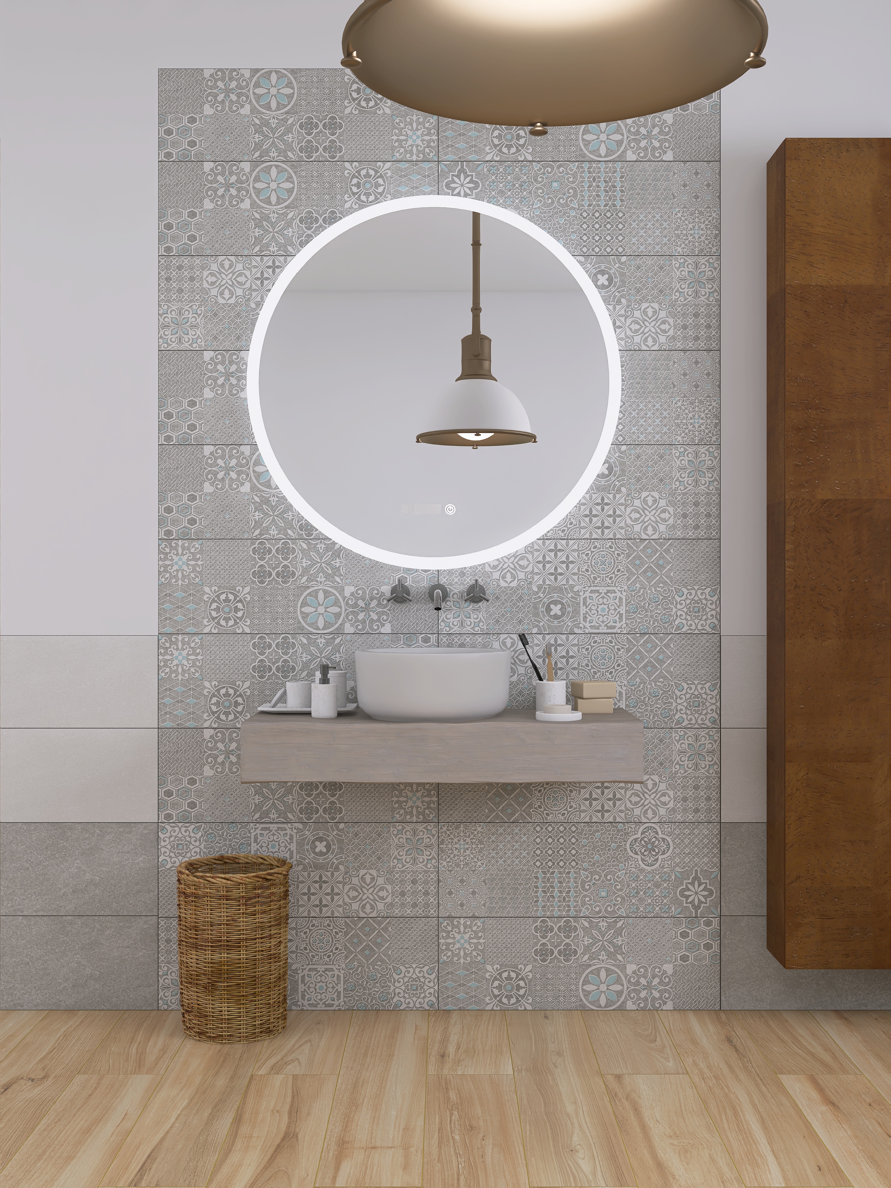 A queste si aggiungono la classica decorazione a muretto e una più innovativa in stile cementine con un leggero effetto 3d chiamata “Sun” nella versione beige e “Moon” nella versione grigia. Consigliamo l’abbinamento con alcuni dei nostri pavimenti: “DECK sbiancato” o “ETERNITY grey” per i toni freddi, “DECK noce” o “HIMALAYA almond” per i toni caldi. Il formato di questa collezione è di 25×75.