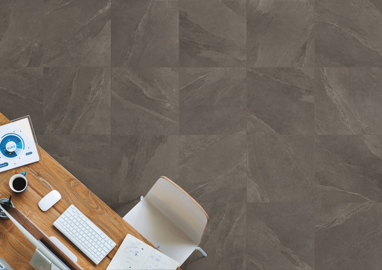 Questa serie in gres porcellanato mostra un carattere deciso e forte riproduce un effetto pietra dall’aspetto marcato che esalta molto le venature della materia.